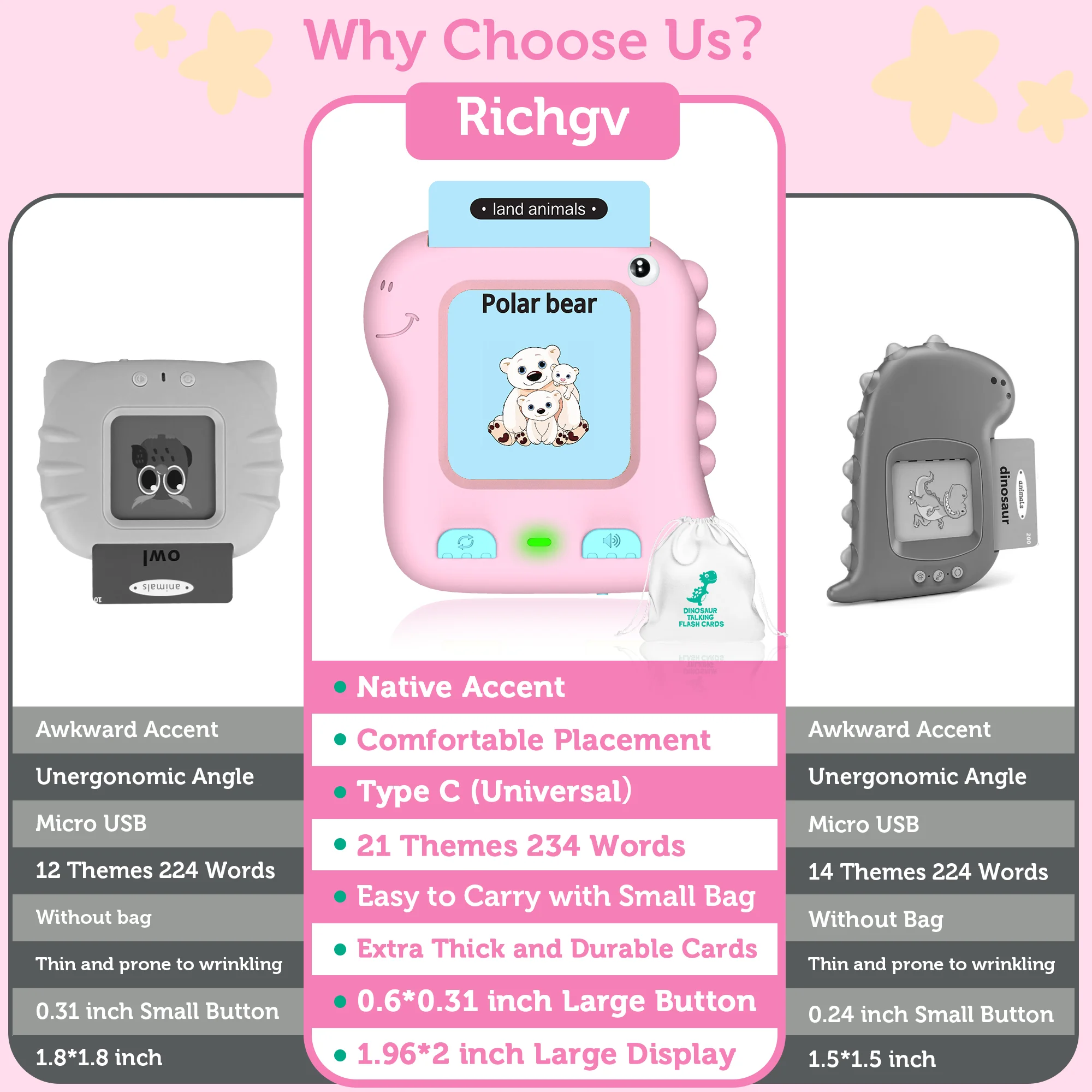 🦖📚 Cartes flash parlantes dinosaures améliorées Richgv – Un jouet d’apprentissage Montessori amusant pour les enfants ! Parfait pour les filles et les garçons de 2 à 6 ans , ce jouet éducatif interactif rend l’apprentissage des mots fréquents, des couleurs, des animaux et des faits amusants passionnant et captivant 🎨✨.